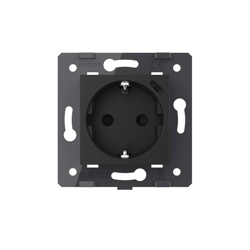 Čierny modul zásuvky SCHUKO + USB-C LIVOLO VL-C7-C1EUC-12 určený pre pripojenie eletrických spotrebičov na území EU. Zásuvka SCHUKO nie je opatrená ochranným kolíkom a preto ju neodporúčame inštalovať na území SR. Pre použitie v tuzemsku prosím zvážte možnosť použitia zásuviek typu FR.